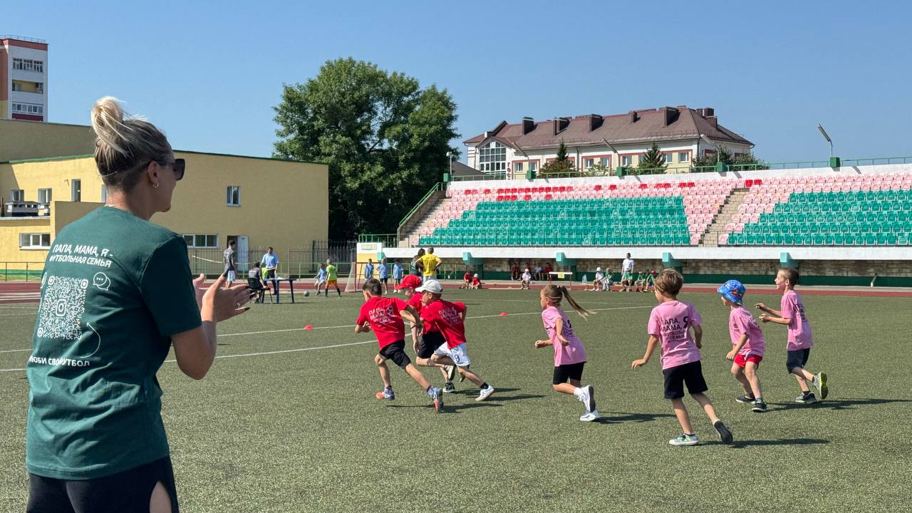 Все участники были разделены на команды. Папы играли в футбол с папами, мамы - с мамами, а