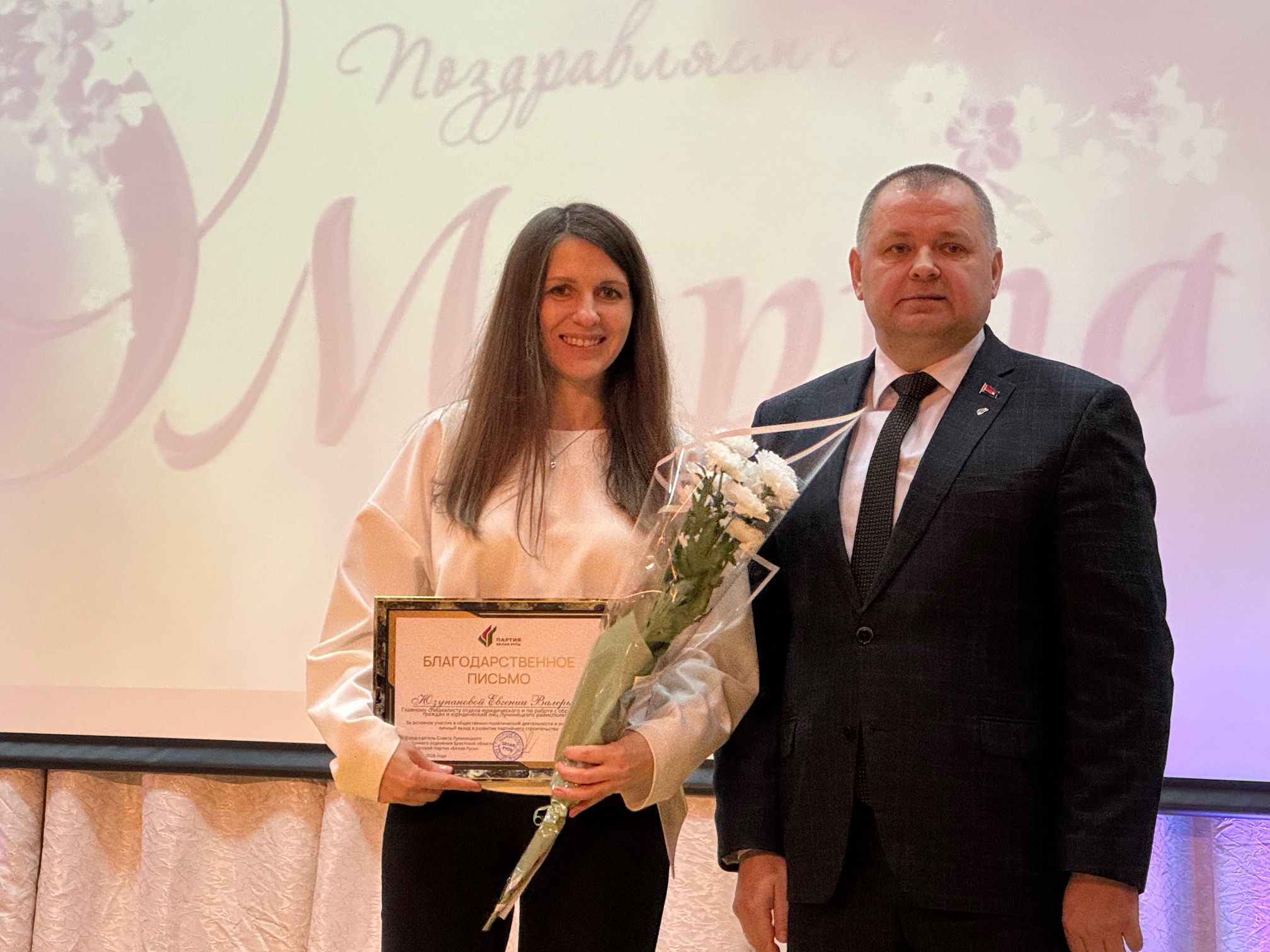 К теплым словам присоединился и председатель РО партии «Белая Русь» Андрей Бовкунович, отметив особую роль женщин.