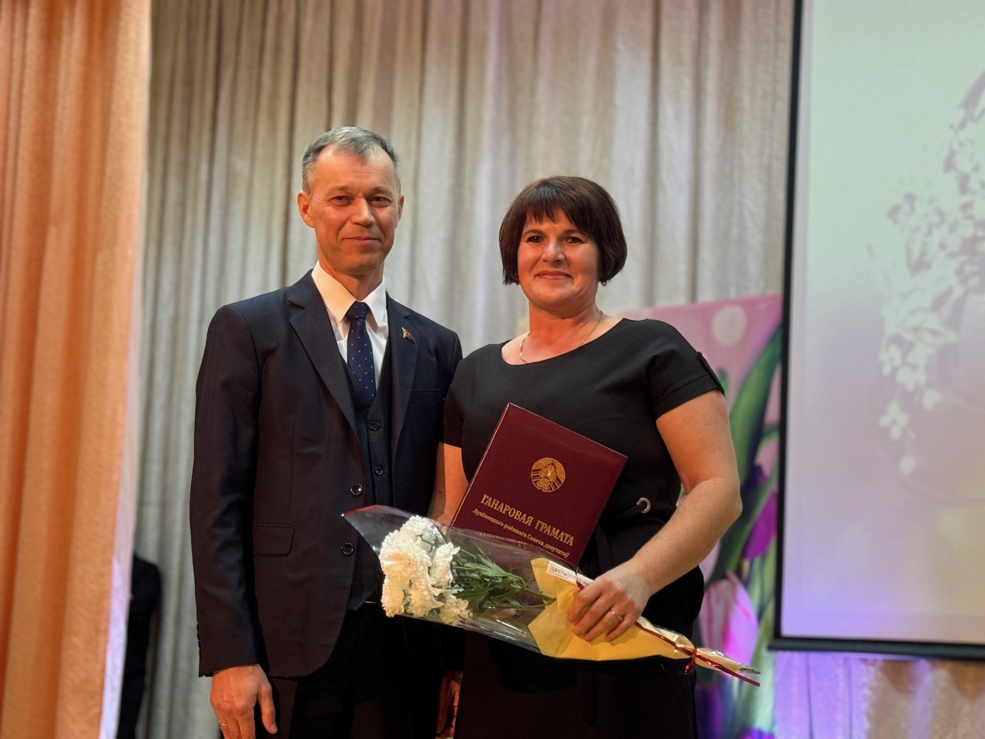 С приветственным словом и искренними поздравлениями к присутствующим обратились первый заместитель председателя райисполкома – начальник управления по сельскому хозяйству и продовольствию Иван Грицкевич и председатель районного Совета депутатов Владимир Ковалевич. Они подчеркнули неоценимый вклад женщин в развитии всех сфер жизни и наградили почетными грамотами, благодарностями и цветами тружениц и активисток района.
