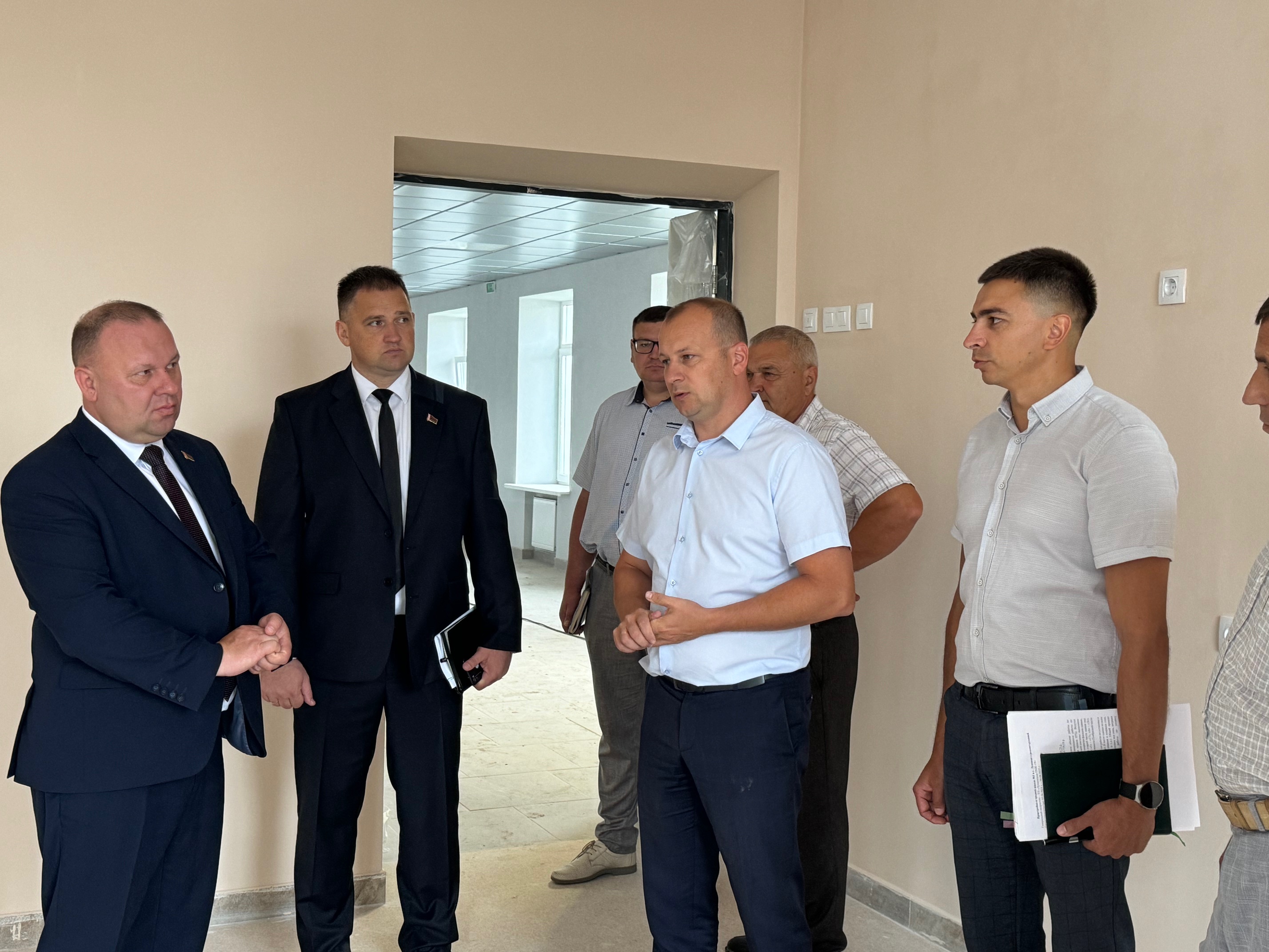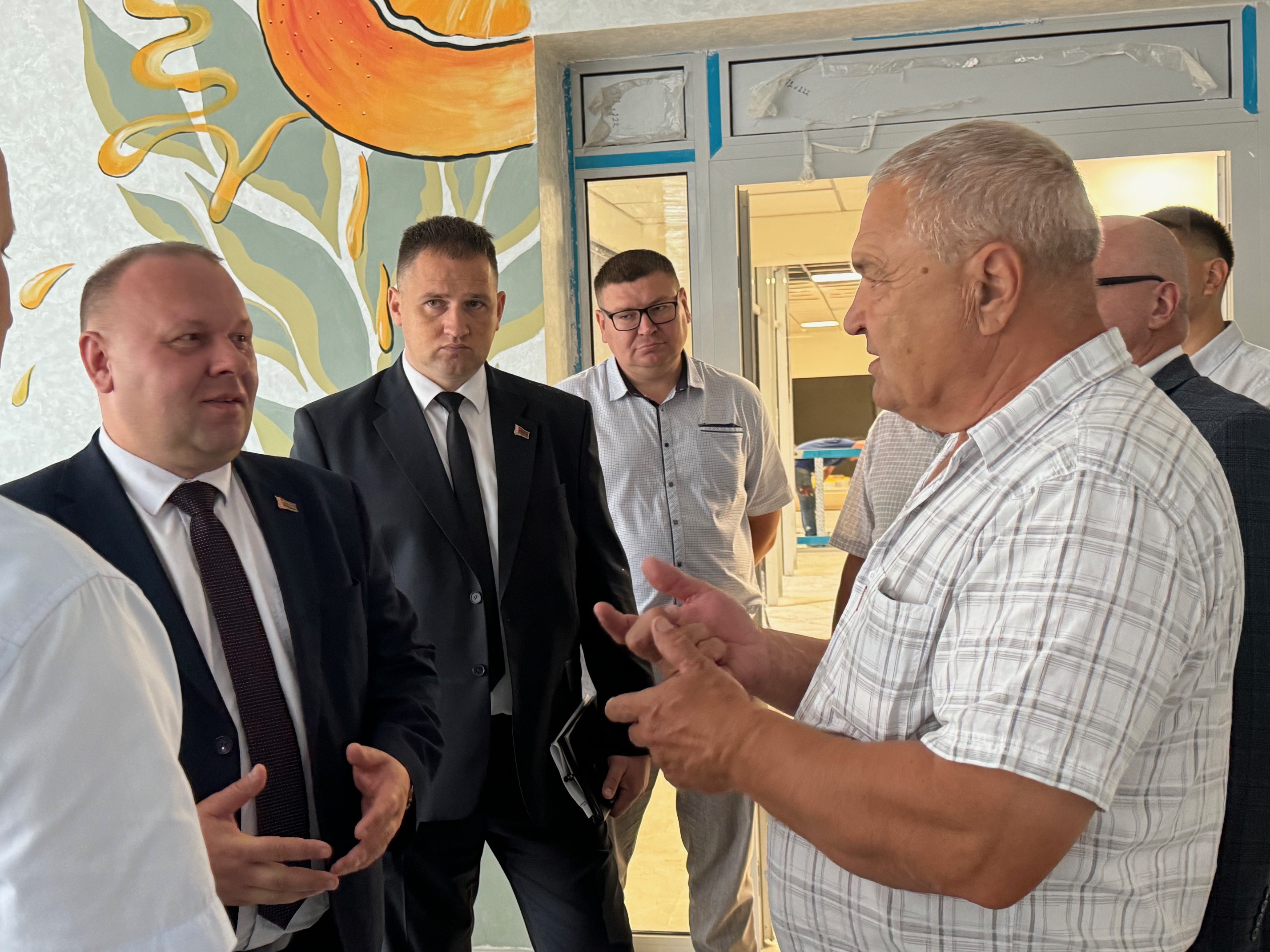 Заместитель председателя Брестского областного исполнительного комитета Виктор Рафалович в сопровождении председателя Лунинецкого райисполкома Александра Савины, его заместителей Вадима Заруба и Сергея Черненко, начальников структурных подразделений райисполкома, представителей подрядных организаций ознакомился с ходом работ по реконструкции СШ №1 в Лунинце.