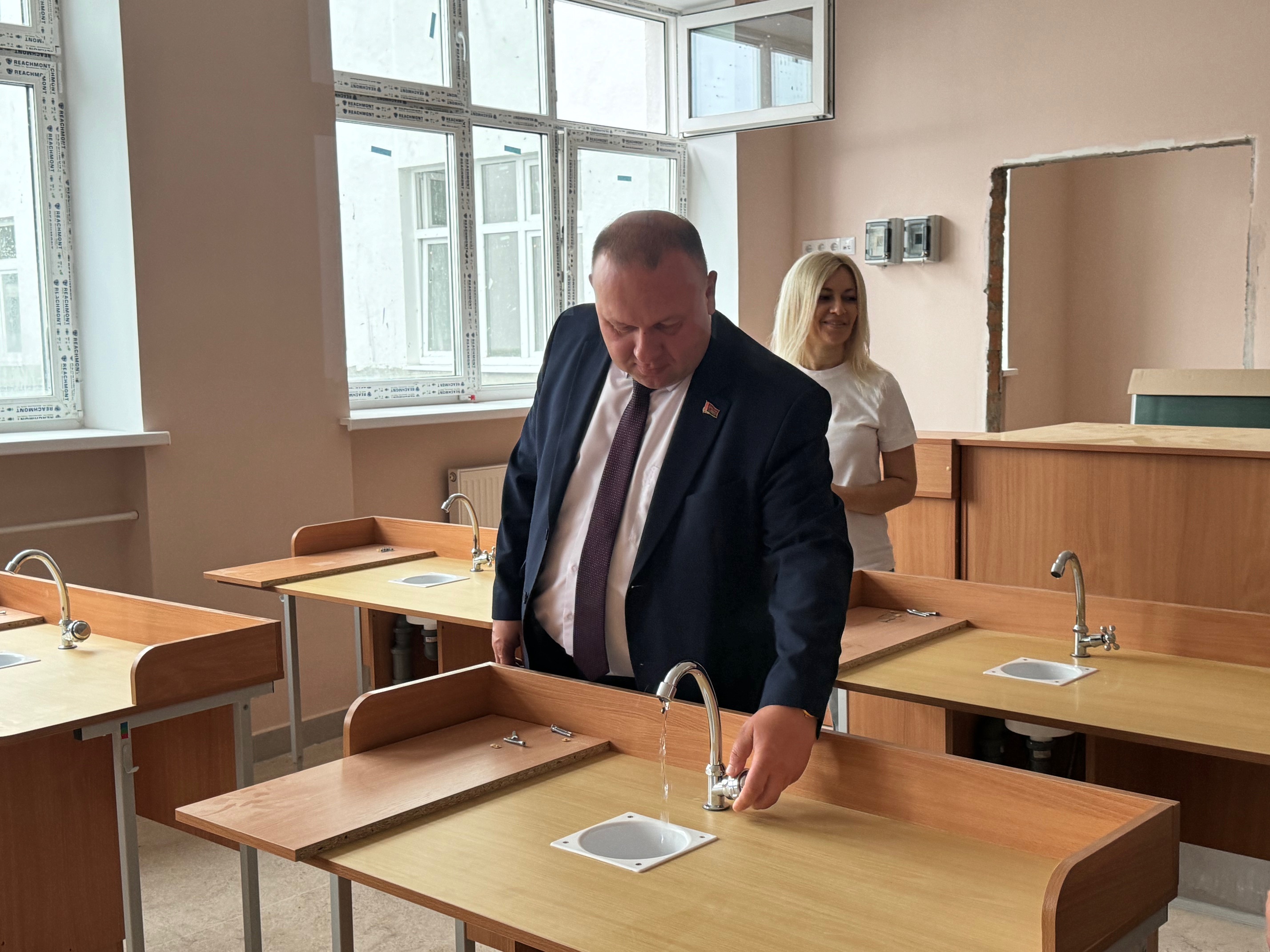 Затем Виктор Рафалович отправился в гимназию имени Н.П.Анцукевича, где в настоящий момент проводится модернизация объектов благоустройства.