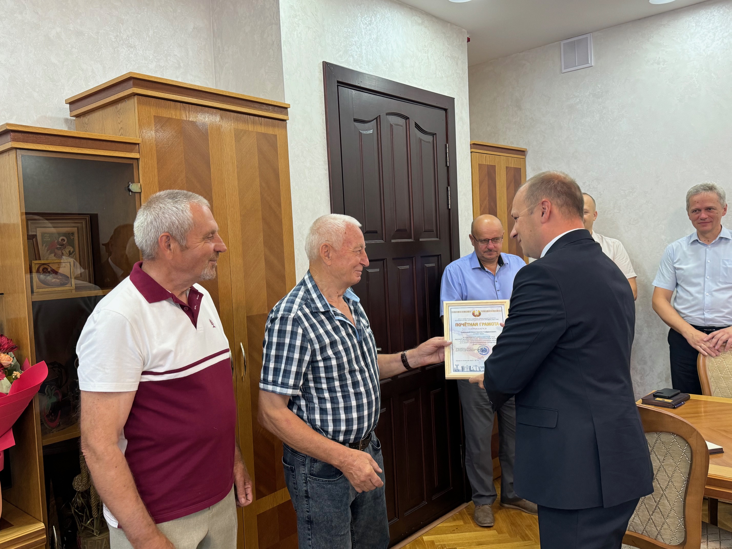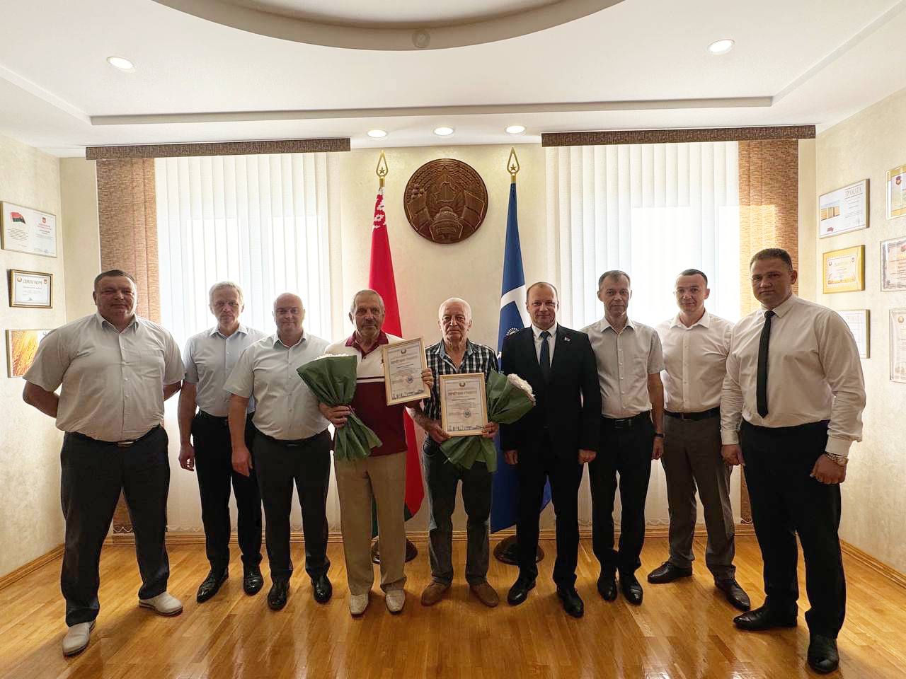 Сегодня, 8 августа, председатель райисполкома Александр Савина вручил почетные грамоты ветеранам труда нашего района: директору УП «УКС Лунинецкого района» Виктору Белко и архитектору города Константу Новицкому.