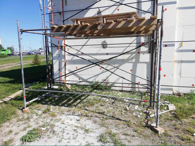 подмости к выступающим и малоустойчивым частям здания и конструкциям и