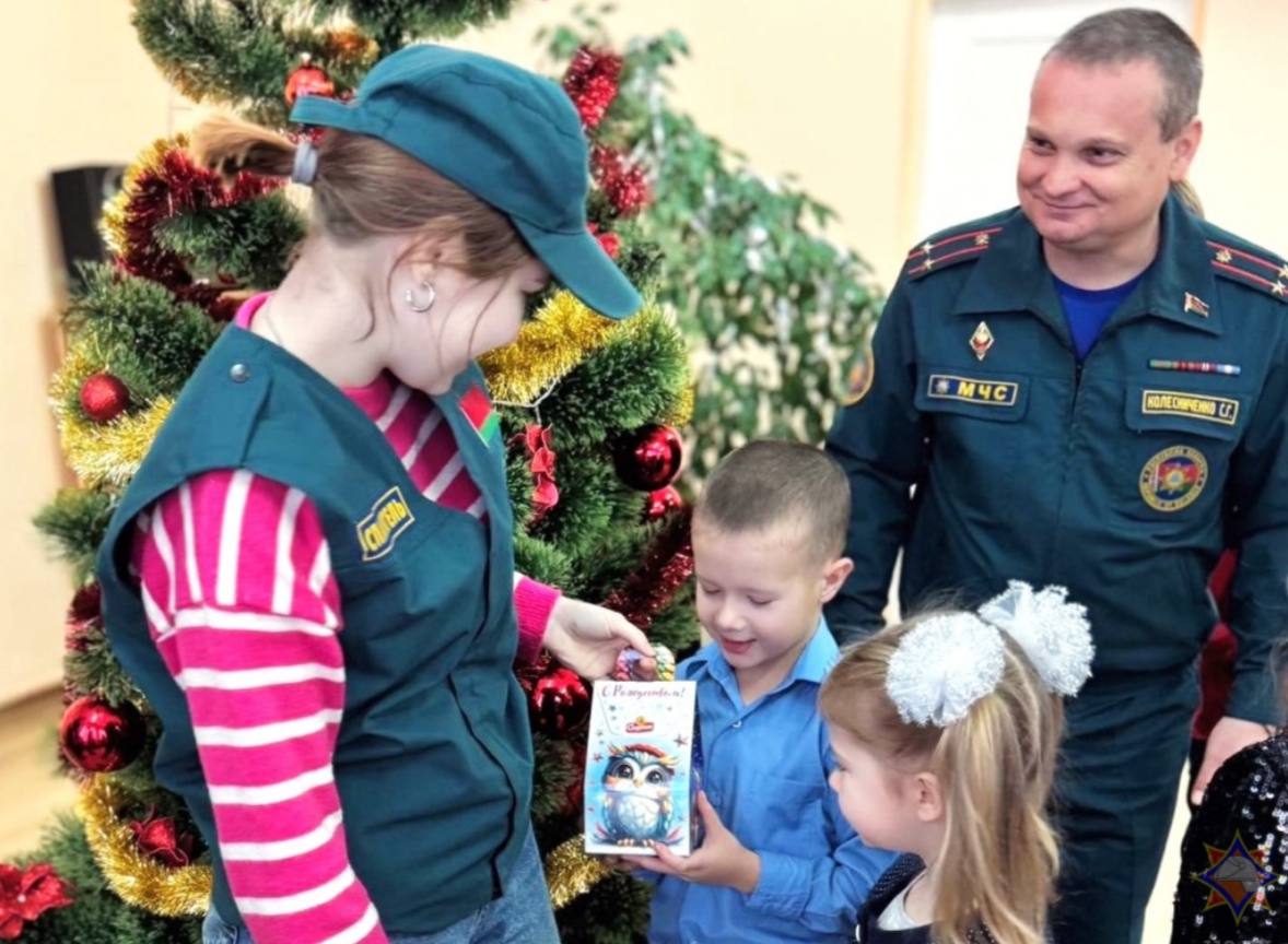 и юные спасатели вручили детворе новогодние подарки, а мальчишки и девчонки, в